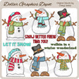 Questa collezione include sei pupazzi di neve invernali con cappelli a cilindro, paraorecchie, cappelli invernali e sciarpe e tre grafiche di word art invernali: "Let It Snow", "Snow Better Friend Than You" e "Walkin In A Winter Wonderland". Questa collezione grafica è stata creata utilizzando una speciale tecnica di colorazione che esalta l'ombreggiatura e la trama della grafica. Sono davvero carini...e unici! Questo set contiene 9 grafici.