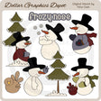 Questa collezione include adorabili pupazzi di neve invernali, dolci uccellini, pini, neve, fiocchi di neve e una grafica word art "Frozy Nose". Questo set contiene 8 grafici.