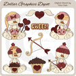Questa collezione include adorabili pupazzi di neve di San Valentino con cappelli invernali, guanti, un biglietto di San Valentino in una busta, cuori rossi, cupcake glassati, fiocchi e frecce, un cuore con le ali e una grafica con parole "Dolce". Questo set contiene 8 grafici.
