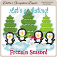 Questa collezione include quattro adorabili pinguini, con pattini da ghiaccio, sciarpe invernali e cuffie antirumore, due stagni di ghiaccio, tre pini innevati e due grafiche di word art invernali: "Let's Go Skating" e "Freezin Season". Questo set contiene 11 grafici.