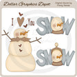 Questa collezione include un pupazzo di neve invernale con bottoni a forma di cuore, un grazioso fiocco e la scritta "Ti amo" e due grafiche con parole "Neve", ciascuna con diverse facce di pupazzo di neve. Questo set contiene 3 grafici.