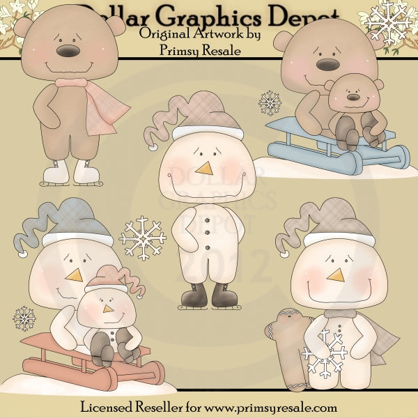 Questa collezione comprende adorabili pupazzi di neve e orsacchiotti, cappelli invernali, sciarpe, pattini da ghiaccio, un omino di pan di zenzero, neve, slitte e fiocchi di neve. Questo set contiene 5 grafici.
