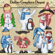 Questa collezione include una bambina che indossa un completo invernale rosa, guanti e cappello da neve, con alberi di pino e un pupazzo di neve, un pupazzo di neve con una sciarpa invernale blu, paraorecchie, un simpatico pinguino e tanta neve che cade, una bambina che indossa un completo invernale rosa, guanti, una sciarpa e un cappello da neve, con un piccolo pupazzo di neve, un ragazzino che indossa un completo invernale blu, guanti, una sciarpa e un cappello invernale, con un pupazzo di neve e un simpatico pinguino, una bambina con un adorabile completo rosa a pois, una sciarpa e un cappotto invernale con alberi di pino, che gioca con le palle di neve e tre pupazzi di neve con sciarpe e cappelli invernali blu e rosa. Questo set contiene 6 grafici.