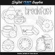 Questa collezione comprende una caffettiera e una tazza da caffè con caffè caldo, un uovo con pancetta, frutta (melone, banana e arancia), un barattolo di burro e biscotti, una ciotola piena di cereali caldi, una cialda con burro, pane tostato con gelatina e un barattolo di gelatina e una grafica word art "Colazione". NOTA BENE: questo set si coordina con la collezione "Breakfast Time - Clip Art" . Questo set contiene 8 timbri digitali.