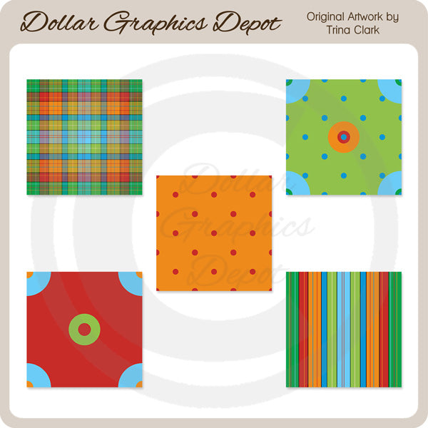 Questa collezione include cinque tessere di sfondo Garden Cuties da 1" x 1" con strisce, cerchi, pois e motivi a percalle. NOTA BENE: questo set si coordina con le collezioni "Garden Cuties - Clip Art", "Garden Cuties - Scrap Papers" e "Garden Cuties - Gift Tags" . Questo set contiene 5 elementi grafici per piastrelle di sfondo.