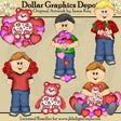 Questa collezione comprende quattro adorabili ragazzi di San Valentino, cuori di San Valentino rosa, rossi e viola, mazzi di rose rosse e graziosi orsetti di San Valentino. Questo set contiene 6 grafici.