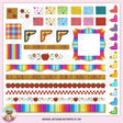 Questa ENORME collezione comprende sei sfondi a pois, sei sfondi con texture, uno sfondo a quadri colorato, uno sfondo a strisce colorate, uno sfondo con mela rossa e pois, una mela rossa e sovrapposizione a pois, una cornice a matita colorata, tre graziosi bordi angolari con piccoli cuori, dodici bordi angolari di matita colorata, un bordo di matita colorata, un bordo di matita colorata smerlata, una mela rossa, una foglia verde e un bordo di fiore, un bordo a quadretti rossi e bianchi, un bordo di mela rossa, una mela rossa, foglia verde e bordo con accento floreale, bordo con accento del righello e bordo con accento del righello. Questo set contiene 40 grafici. NOTA BENE: questo set è coordinato con la collezione grafica " School Daze ".