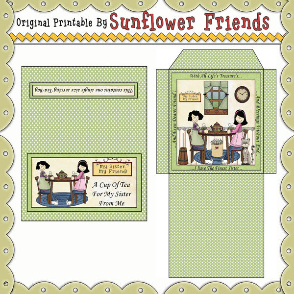Ogni bustina di tè e decorazione viene fornita individualmente e impostata su pagine pronte per la stampa.