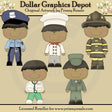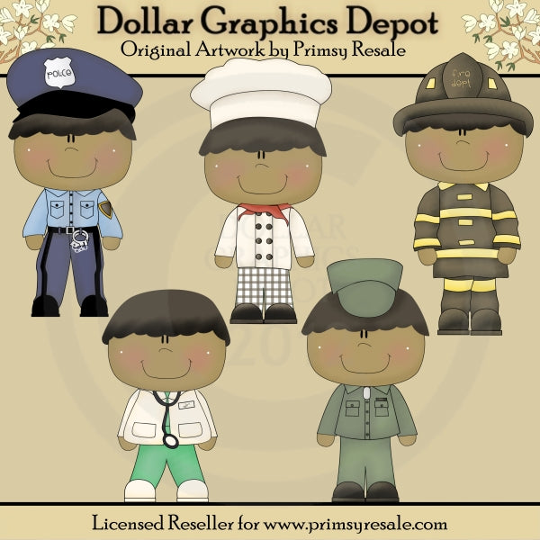 Questa collezione include un agente di polizia, uno chef, un pompiere, un medico e un soldato. Questo set contiene 5 grafici.