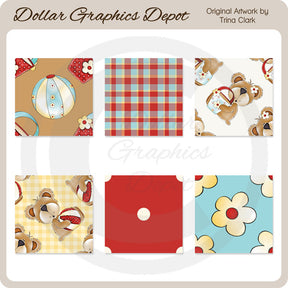 This collection includes six 1" x 1" Beach Bear background tiles with bears, beach buckets, beach balls, polka dots, floral, and plaid patterns. PLEASE NOTE: This set coordinates with "Beach Bears 1 - Clip Art" and "Beach Bears 1 - Scrap Papers" collections. This set contains 6 background tile graphics.