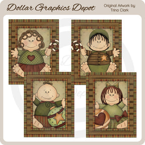 This collection includes four 4.25" x 5.5" card fronts, depicting Christmas baby boys and girls with candy canes and Christmas ornaments. PLEASE NOTE: This set coordinates with the "Christmas Babies 1 - Clip Art," "Christmas Babies 2 - Clip Art," and "Christmas Babies 2 - Cards" collections. This set contains 4 greeting cards.