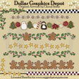 This collection includes eight Christmas borders and two Christmas corners - one black and white checkered border, one red and white peppermint candy border, one green, red, white, and black Christmas cookie border including Christmas trees, a snowman, penguin, candy cane, snowflake, poinsettia, and traditional round cookies, one green and red holly berry garland border with brown gingerbread men and red and white peppermint candies, one gold star border, one green and red holly berry garland border, one brown gingerbread man border, one red and white checkered border, one green and red holly berry corner border, and one gold star corner border This set contains 10 borders.