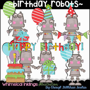 Cute Birthday Robots Clipart Collection