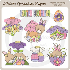 This collection includes adorable Easter bunnies, patchwork Easter eggs, pretty spring flowers, grass, an Easter egg shell, a frosted cupcake, and one "Easter Blessings" word art graphic. PLEASE NOTE: This set coordinates with the "Easter Delights 2 - Clip Art," "Easter Delights - Scrap Papers," "Easter Delights Frames - Scrap Elements," and "Easter Delights Alphas" collections. This set contains 8 graphics.