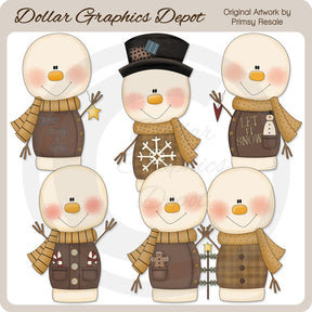 This collection includes adorable winter snowmen, with winter coats and scarves - one has a gold star ornament and "Wish Upon A Star" word art, one has a top hat and a snowflake, one has a red heart ornament, a little snowman, and "Let It Snow" word art, one has striped candy canes, and the snowman couple have a little gingerbread man and a Christmas tree with gold star on top. This set contains 5 graphics.