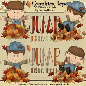 This collection includes cute little boys and girls, wearing gingham shirts and overalls, jumping into colorful autumn leaves, and two "Jump Into Fall" word art graphics. This set contains 6 graphics.