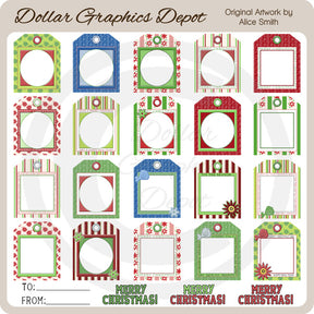This HUGE collection includes twenty large Christmas gift tags, three "Merry Christmas" word art graphics, and one "To: and From:" word art graphic. These gift tags were created at a larger size, than our regular gift tags, to accommodate larger packages. They have been shrunk down very small, in order to fit on the preview. Please Note: This set coordinates with the "Christmas Patterns 1 - Scrap Papers" and "Christmas Patterns 2 - Scrap Papers" collections.This set contains 24 tags.