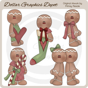This collection includes adorable gingerbread men and ladies, pretty bows, a red heart, a striped candy cane, and a Christmas stocking with a stitched heart. PLEASE NOTE: This set coordinates with the "Primsy Gingers - Backgrounds" collection. This set contains 5 graphics.