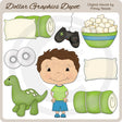 This collection includes an adorable little boy, wearing pajamas and slippers, a sleeping bag, a pillow, a sleeping bag with pillow, a bowl of popcorn, CDs, a video game controller, and a toy dinosaur. This set contains 8 graphics.