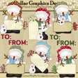 This collection includes six Christmas gift tags with pretty bows, adorable snowmen with winter hats and scarves, baby snowmen, and four word art graphics - "To:" (2) and "From:" (2). This set contains 10 graphics.