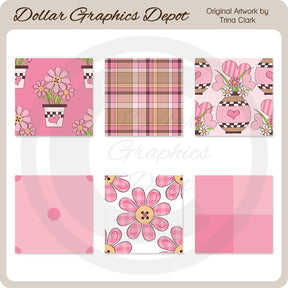 This collection includes six 1" x 1" valentine background tiles with pretty flower pots, a plaid pattern, pretty flower vases, polka dots, flower faces, and a gingham pattern. PLEASE NOTE: This set coordinates with the "Valentine Owls 1 - Clip Art," "Valentine Owls 1 - Scrap Papers," and "Valentine Owls 1 - Digital Stamps" collections. This set contains 6 background tiles.